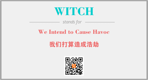 上述内容是“We Intend to Cause Havoc”作为“WITCH”的缩写,解释为“我们打算造成浩劫”时的信息,以及英文缩略词WITCH所代表的英文单词,其对应的中文拼音、详细解释以及在英文中的流行度和相关分类、应用领域及应用示例等。