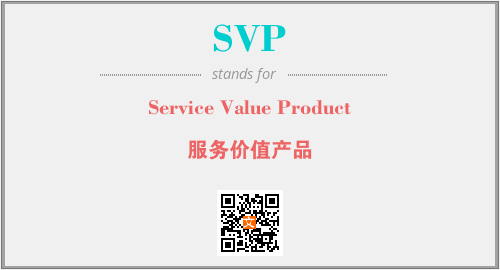 英文缩略词“SVP”经常作为“Service Value Product”的英文缩写来使用,中文表示:“服务价值产品”。本文将详细介绍英文缩写词SVP所代表英文单词,其对应的中文拼音、详细解释以及在英语中的流行度。此外,还有关于缩略词SVP的分类、应用领域及相关应用示例等。