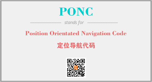 上述内容是“Position Orientated Navigation Code”作为“PONC”的缩写,解释为“定位导航代码”时的信息,以及英文缩略词PONC所代表的英文单词,其对应的中文拼音、详细解释以及在英文中的流行度和相关分类、应用领域及应用示例等。