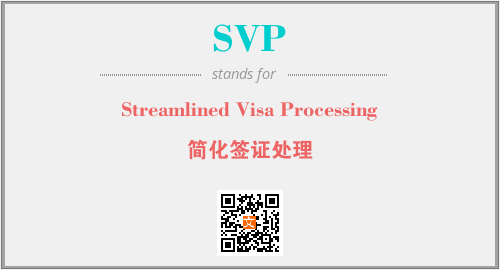 以上为Streamlined Visa Processing英文缩略词SVP的中文解释,以及该英文缩写在英语的流行度、分类和应用领域方面的信息。