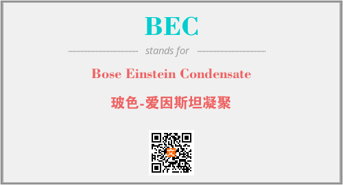 上述内容是“Bose Einstein Condensate”作为“BEC”的缩写,解释为“玻色-爱因斯坦凝聚”时的信息,以及英文缩略词BEC所代表的英文单词,其对应的中文拼音、详细解释以及在英文中的流行度和相关分类、应用领域及应用示例等。