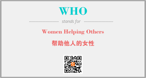 以上为Women Helping Others英文缩略词WHO的中文解释,以及该英文缩写在英语的流行度、分类和应用领域方面的信息。