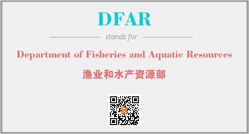 英文缩略词“DFAR”经常作为“Department of Fisheries and Aquatic Resources”的英文缩写来使用,中文表示:“渔业和水产资源部”。本文将详细介绍英文缩写词DFAR所代表英文单词,其对应的中文拼音、详细解释以及在英语中的流行度。此外,还有关于缩略词DFAR的分类、应用领域及相关应用示例等。