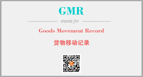 英文缩略词“GMR”经常作为“Goods Movement Record”的英文缩写来使用,中文表示:“货物移动记录”。本文将详细介绍英文缩写词GMR所代表英文单词,其对应的中文拼音、详细解释以及在英语中的流行度。此外,还有关于缩略词GMR的分类、应用领域及相关应用示例等。
