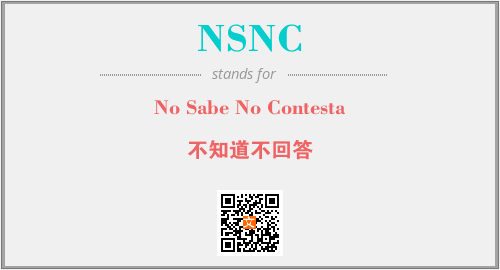 以上为No Sabe No Contesta英文缩略词NSNC的中文解释,以及该英文缩写在英语的流行度、分类和应用领域方面的信息。