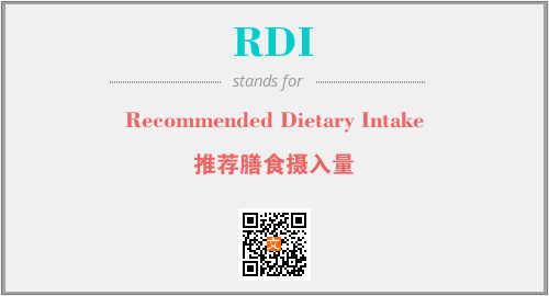 上述内容是“Recommended Dietary Intake”作为“RDI”的缩写,解释为“推荐膳食摄入量”时的信息,以及英文缩略词RDI所代表的英文单词,其对应的中文拼音、详细解释以及在英文中的流行度和相关分类、应用领域及应用示例等。