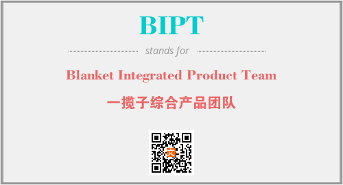 英文缩略词“BIPT”经常作为“Blanket Integrated Product Team”的英文缩写来使用,中文表示:“一揽子综合产品团队”。本文将详细介绍英文缩写词BIPT所代表英文单词,其对应的中文拼音、详细解释以及在英语中的流行度。此外,还有关于缩略词BIPT的分类、应用领域及相关应用示例等。