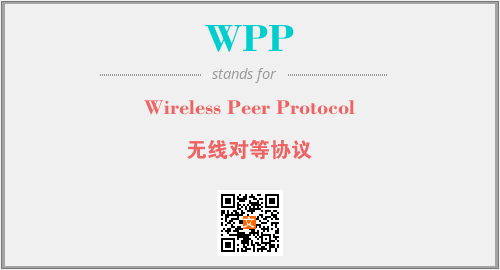 英文缩略词“WPP”经常作为“Wireless Peer Protocol”的英文缩写来使用,中文表示:“无线对等协议”。本文将详细介绍英文缩写词WPP所代表英文单词,其对应的中文拼音、详细解释以及在英语中的流行度。此外,还有关于缩略词WPP的分类、应用领域及相关应用示例等。
