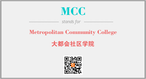 英文缩略词“MCC”经常作为“Metropolitan Community College”的英文缩写来使用,中文表示:“大都会社区学院”。本文将详细介绍英文缩写词MCC所代表英文单词,其对应的中文拼音、详细解释以及在英语中的流行度。此外,还有关于缩略词MCC的分类、应用领域及相关应用示例等。