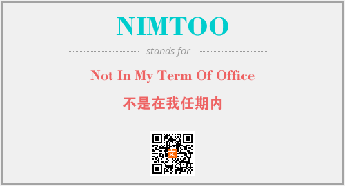 以上为Not In My Term Of Office英文缩略词NIMTOO的中文解释,以及该英文缩写在英语的流行度、分类和应用领域方面的信息。