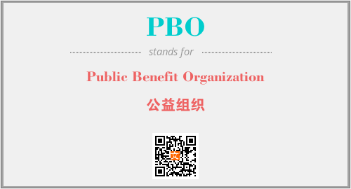上述内容是“Public Benefit Organization”作为“PBO”的缩写,解释为“公益组织”时的信息,以及英文缩略词PBO所代表的英文单词,其对应的中文拼音、详细解释以及在英文中的流行度和相关分类、应用领域及应用示例等。