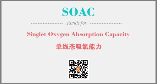 上述内容是“Singlet Oxygen Absorption Capacity”作为“SOAC”的缩写,解释为“单线态吸氧能力”时的信息,以及英文缩略词SOAC所代表的英文单词,其对应的中文拼音、详细解释以及在英文中的流行度和相关分类、应用领域及应用示例等。