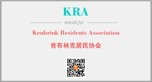 上述内容是“Kenbrink Residents Association”作为“KRA”的缩写,解释为“肯布林克居民协会”时的信息,以及英文缩略词KRA所代表的英文单词,其对应的中文拼音、详细解释以及在英文中的流行度和相关分类、应用领域及应用示例等。