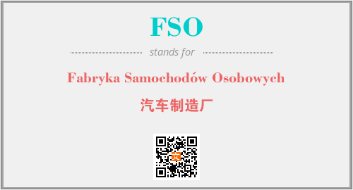 英文缩略词“FSO”经常作为“Fabryka Samochodów Osobowych”的英文缩写来使用,中文表示:“汽车制造厂”。本文将详细介绍英文缩写词FSO所代表英文单词,其对应的中文拼音、详细解释以及在英语中的流行度。此外,还有关于缩略词FSO的分类、应用领域及相关应用示例等。