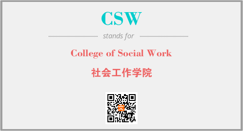英文缩略词“CSW”经常作为“College of Social Work”的英文缩写来使用,中文表示:“社会工作学院”。本文将详细介绍英文缩写词CSW所代表英文单词,其对应的中文拼音、详细解释以及在英语中的流行度。此外,还有关于缩略词CSW的分类、应用领域及相关应用示例等。