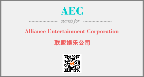 上述内容是“Alliance Entertainment Corporation”作为“AEC”的缩写,解释为“联盟娱乐公司”时的信息,以及英文缩略词AEC所代表的英文单词,其对应的中文拼音、详细解释以及在英文中的流行度和相关分类、应用领域及应用示例等。
