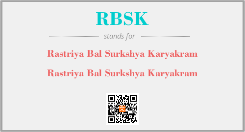 上述内容是“Rastriya Bal Surkshya Karyakram”作为“RBSK”的缩写,解释为“Rastriya Bal Surkshya Karyakram”时的信息,以及英文缩略词RBSK所代表的英文单词,其对应的中文拼音、详细解释以及在英文中的流行度和相关分类、应用领域及应用示例等。