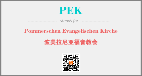 英文缩略词“PEK”经常作为“Pommerschen Evangelischen Kirche”的英文缩写来使用,中文表示:“波美拉尼亚福音教会”。本文将详细介绍英文缩写词PEK所代表英文单词,其对应的中文拼音、详细解释以及在英语中的流行度。此外,还有关于缩略词PEK的分类、应用领域及相关应用示例等。