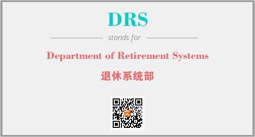 上述内容是“Department of Retirement Systems”作为“DRS”的缩写,解释为“退休系统部”时的信息,以及英文缩略词DRS所代表的英文单词,其对应的中文拼音、详细解释以及在英文中的流行度和相关分类、应用领域及应用示例等。