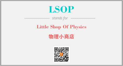 英文缩略词“LSOP”经常作为“Little Shop Of Physics”的英文缩写来使用,中文表示:“物理小商店”。本文将详细介绍英文缩写词LSOP所代表英文单词,其对应的中文拼音、详细解释以及在英语中的流行度。此外,还有关于缩略词LSOP的分类、应用领域及相关应用示例等。