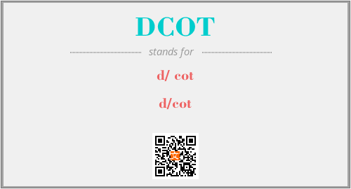 英文缩略词“DCOT”经常作为“d/ cot”的英文缩写来使用,中文表示:“d/cot”。本文将详细介绍英文缩写词DCOT所代表英文单词,其对应的中文拼音、详细解释以及在英语中的流行度。此外,还有关于缩略词DCOT的分类、应用领域及相关应用示例等。