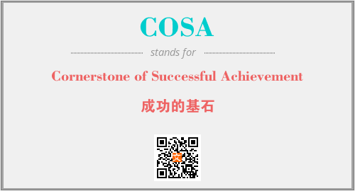 以上为Cornerstone of Successful Achievement英文缩略词COSA的中文解释,以及该英文缩写在英语的流行度、分类和应用领域方面的信息。