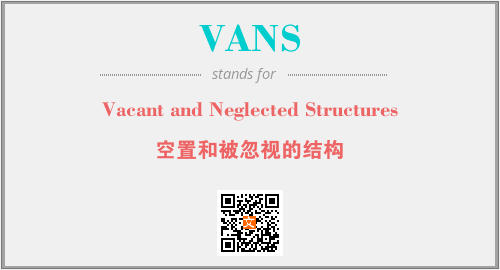 上述内容是“Vacant and Neglected Structures”作为“VANS”的缩写,解释为“空置和被忽视的结构”时的信息,以及英文缩略词VANS所代表的英文单词,其对应的中文拼音、详细解释以及在英文中的流行度和相关分类、应用领域及应用示例等。