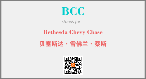 上述内容是“Bethesda Chevy Chase”作为“BCC”的缩写,解释为“贝塞斯达·雪佛兰·蔡斯”时的信息,以及英文缩略词BCC所代表的英文单词,其对应的中文拼音、详细解释以及在英文中的流行度和相关分类、应用领域及应用示例等。