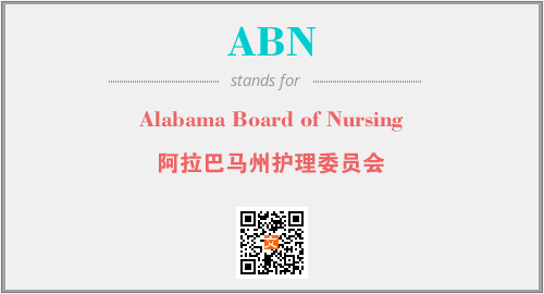 英文缩略词“ABN”经常作为“Alabama Board of Nursing”的英文缩写来使用,中文表示:“阿拉巴马州护理委员会”。本文将详细介绍英文缩写词ABN所代表英文单词,其对应的中文拼音、详细解释以及在英语中的流行度。此外,还有关于缩略词ABN的分类、应用领域及相关应用示例等。