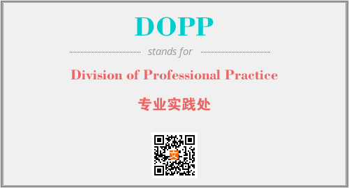 以上为Division of Professional Practice英文缩略词DOPP的中文解释,以及该英文缩写在英语的流行度、分类和应用领域方面的信息。