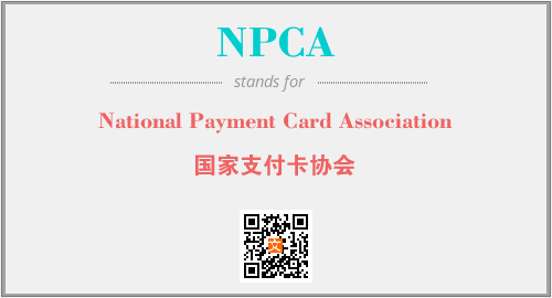 上述内容是“National Payment Card Association”作为“NPCA”的缩写,解释为“国家支付卡协会”时的信息,以及英文缩略词NPCA所代表的英文单词,其对应的中文拼音、详细解释以及在英文中的流行度和相关分类、应用领域及应用示例等。