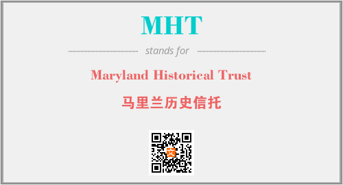 上述内容是“Maryland Historical Trust”作为“MHT”的缩写,解释为“马里兰历史信托”时的信息,以及英文缩略词MHT所代表的英文单词,其对应的中文拼音、详细解释以及在英文中的流行度和相关分类、应用领域及应用示例等。