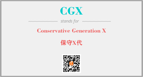上述内容是“Conservative Generation X”作为“CGX”的缩写,解释为“保守X代”时的信息,以及英文缩略词CGX所代表的英文单词,其对应的中文拼音、详细解释以及在英文中的流行度和相关分类、应用领域及应用示例等。