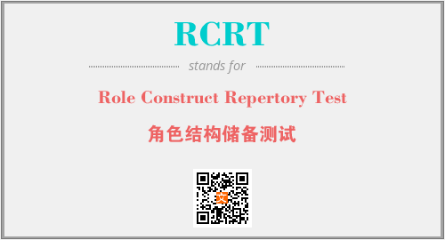 英文缩略词“RCRT”经常作为“Role Construct Repertory Test”的英文缩写来使用,中文表示:“角色结构储备测试”。本文将详细介绍英文缩写词RCRT所代表英文单词,其对应的中文拼音、详细解释以及在英语中的流行度。此外,还有关于缩略词RCRT的分类、应用领域及相关应用示例等。