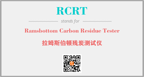 英文缩略词“RCRT”经常作为“Ramsbottom Carbon Residue Tester”的英文缩写来使用,中文表示:“拉姆斯伯顿残炭测试仪”。本文将详细介绍英文缩写词RCRT所代表英文单词,其对应的中文拼音、详细解释以及在英语中的流行度。此外,还有关于缩略词RCRT的分类、应用领域及相关应用示例等。