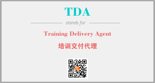 英文缩略词“TDA”经常作为“Training Delivery Agent”的英文缩写来使用,中文表示:“培训交付代理”。本文将详细介绍英文缩写词TDA所代表英文单词,其对应的中文拼音、详细解释以及在英语中的流行度。此外,还有关于缩略词TDA的分类、应用领域及相关应用示例等。