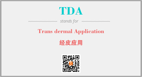 上述内容是“Trans dermal Application”作为“TDA”的缩写,解释为“经皮应用”时的信息,以及英文缩略词TDA所代表的英文单词,其对应的中文拼音、详细解释以及在英文中的流行度和相关分类、应用领域及应用示例等。