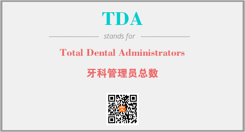 英文缩略词“TDA”经常作为“Total Dental Administrators”的英文缩写来使用,中文表示:“牙科管理员总数”。本文将详细介绍英文缩写词TDA所代表英文单词,其对应的中文拼音、详细解释以及在英语中的流行度。此外,还有关于缩略词TDA的分类、应用领域及相关应用示例等。