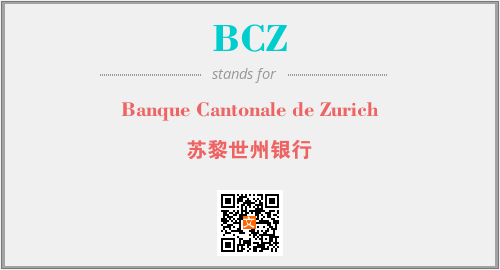 英文缩略词“BCZ”经常作为“Banque Cantonale de Zurich”的英文缩写来使用,中文表示:“苏黎世州银行”。本文将详细介绍英文缩写词BCZ所代表英文单词,其对应的中文拼音、详细解释以及在英语中的流行度。此外,还有关于缩略词BCZ的分类、应用领域及相关应用示例等。