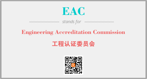 上述内容是“Engineering Accreditation Commission”作为“EAC”的缩写,解释为“工程认证委员会”时的信息,以及英文缩略词EAC所代表的英文单词,其对应的中文拼音、详细解释以及在英文中的流行度和相关分类、应用领域及应用示例等。