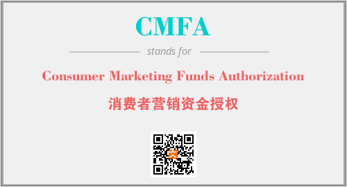 上述内容是“Consumer Marketing Funds Authorization”作为“CMFA”的缩写,解释为“消费者营销资金授权”时的信息,以及英文缩略词CMFA所代表的英文单词,其对应的中文拼音、详细解释以及在英文中的流行度和相关分类、应用领域及应用示例等。