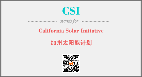 上述内容是“California Solar Initiative”作为“CSI”的缩写,解释为“加州太阳能计划”时的信息,以及英文缩略词CSI所代表的英文单词,其对应的中文拼音、详细解释以及在英文中的流行度和相关分类、应用领域及应用示例等。