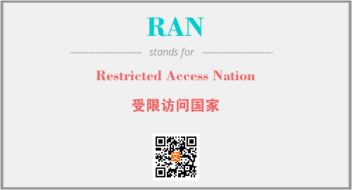 英文缩略词“RAN”经常作为“Restricted Access Nation”的英文缩写来使用,中文表示:“受限访问国家”。本文将详细介绍英文缩写词RAN所代表英文单词,其对应的中文拼音、详细解释以及在英语中的流行度。此外,还有关于缩略词RAN的分类、应用领域及相关应用示例等。