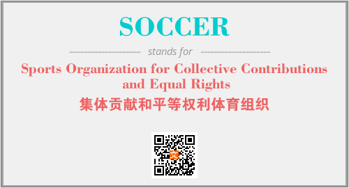 上述内容是“Sports Organization for Collective Contributions and Equal Rights”作为“SOCCER”的缩写,解释为“集体贡献和平等权利体育组织”时的信息,以及英文缩略词SOCCER所代表的英文单词,其对应的中文拼音、详细解释以及在英文中的流行度和相关分类、应用领域及应用示例等。