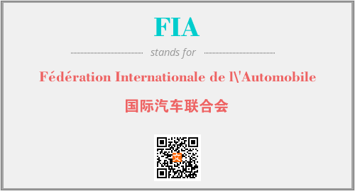 以上为Fédération Internationale de l\'Automobile英文缩略词FIA的中文解释,以及该英文缩写在英语的流行度、分类和应用领域方面的信息。