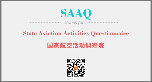 英文缩略词“SAAQ”经常作为“State Aviation Activities Questionnaire”的英文缩写来使用,中文表示:“国家航空活动调查表”。本文将详细介绍英文缩写词SAAQ所代表英文单词,其对应的中文拼音、详细解释以及在英语中的流行度。此外,还有关于缩略词SAAQ的分类、应用领域及相关应用示例等。