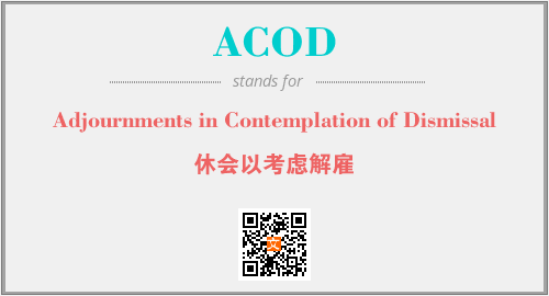 以上为Adjournments in Contemplation of Dismissal英文缩略词ACOD的中文解释,以及该英文缩写在英语的流行度、分类和应用领域方面的信息。