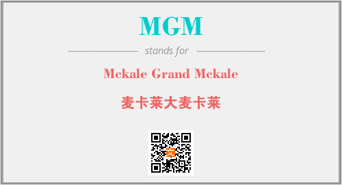 英文缩略词“MGM”经常作为“Mckale Grand Mckale”的英文缩写来使用,中文表示:“麦卡莱大麦卡莱”。本文将详细介绍英文缩写词MGM所代表英文单词,其对应的中文拼音、详细解释以及在英语中的流行度。此外,还有关于缩略词MGM的分类、应用领域及相关应用示例等。