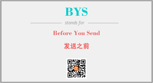 上述内容是“Before You Send”作为“BYS”的缩写,解释为“发送之前”时的信息,以及英文缩略词BYS所代表的英文单词,其对应的中文拼音、详细解释以及在英文中的流行度和相关分类、应用领域及应用示例等。