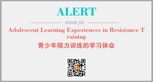 以上为Adolescent Learning Experiences in Resistance Training英文缩略词ALERT的中文解释,以及该英文缩写在英语的流行度、分类和应用领域方面的信息。